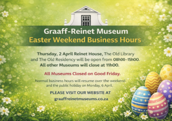 Weβre opening our doors for a fun and memorable morning in the heart of Graaff-Reinet! Come and visit four of our five museums free of charge!